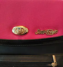 Cartera sr frogs. Linda cartera de charol con broche color rosa oscuro con negro está en perfecto estado solo tiene un ligerito desgaste hay foto al final del detalle pero prácticamente solo se usó en una ocasión es muy linda de la marca señor frogsLas medidas sonLargo 20Alto 11cmAncho 2cm