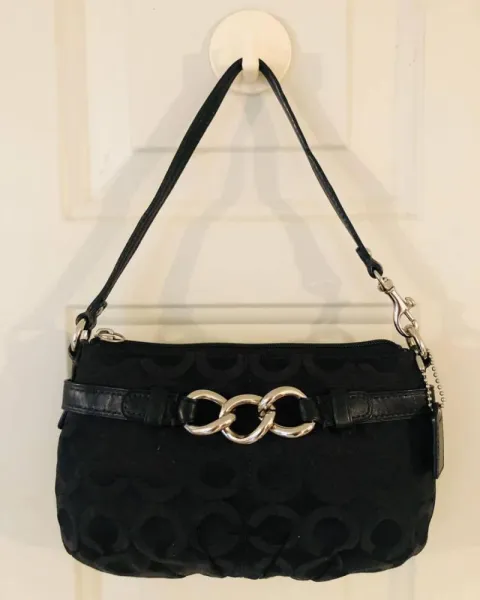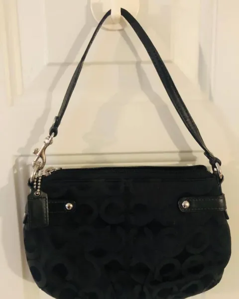 Bonita muñequera coach negra chica cabe bien un celular grande y llaves labial credencial