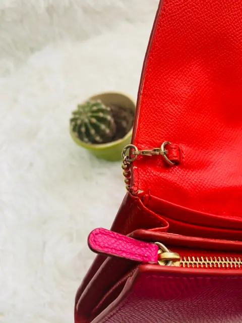 Crossbody Coach!Su correa es desmontable para usar como clutch, es de 2 colores, rojo y rosa. El detalle se muestra en fotos.