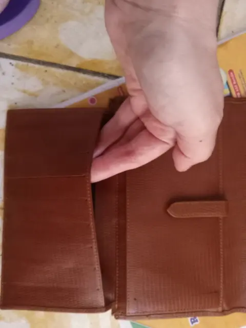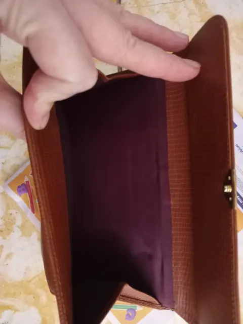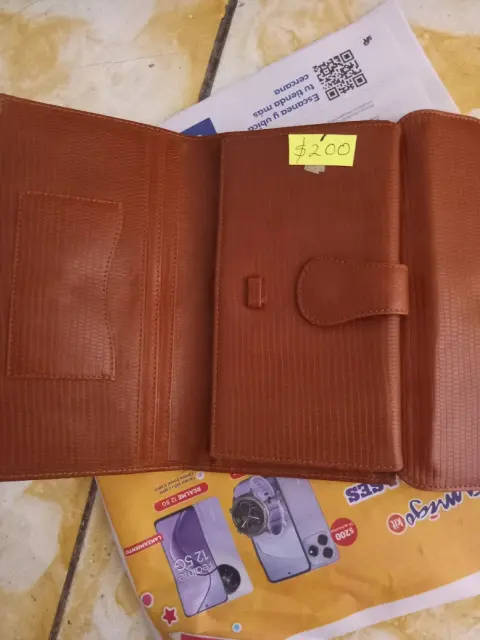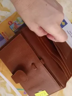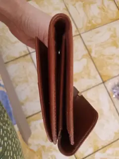 Es NUEVA SIN USO. Grande muyespaciosa.Tarjetas. Billetes , monedero y espacio para una libreta con boli ó 1 Smartphone.En color Café y los forros interiores en color tinto.20 cms ancho y 12 cms alto.