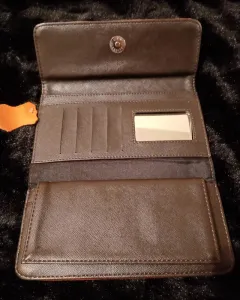 Hermosa cartera 100% piel de vacuno, 19x9.5cm.