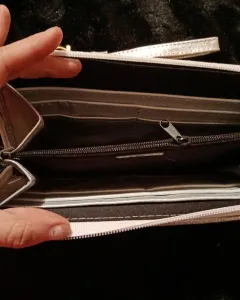 Hermosa cartera 100% piel de vacuno, color plata, nueva ultimo precio.