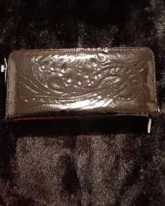 Hermosa cartera 100% piel de vacuno, 19x9.5cm. Hermosa cartera 100% piel de vacuno, charol, negra nueva, ultimo precio.
