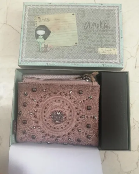 Hermosa cartera juvenil , tiene espacio para tarjeta, y moneda y varios compartimentos para guardar siempre un papelito extra ,está nueva y con paquete original , marca Anekke