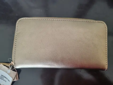 Linda y practica Cartera marca Westi. Cartera nueva con etiqueta marca Westi color oro, bolsa con cierre para moneda espacio para tarjetas y billetes