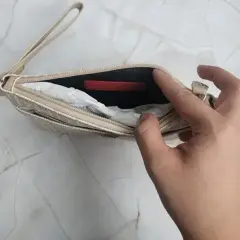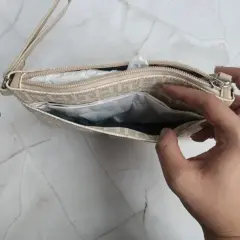 Nueva y original!!!! Sin detalles.Pregunta por disponibilidad.Muñequera Tommy con monograma color beige y letras blancas.Herraje en color plata.Tiene dos compartimentos.Medidas 21cm de largo * 14cm de alto.