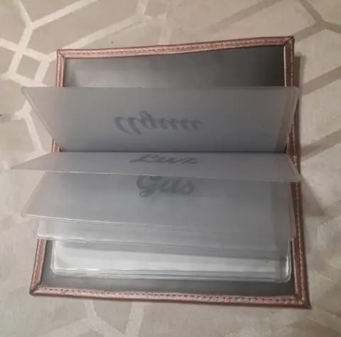 Administra tus finanzas y mantén el control de tu dinero con este práctico y lindo organigastos en color rose gold. Contiene 8 compartimentos personalizados: en carátula una etiqueta con tu nombre y en los compartimentos interiores, etiquetas de acuerdo a tus necesidades (servicios, ahorro, viaje, agua, luz, gas, etc.). Meterial: vinipiel. Disponible también en plata tornasol