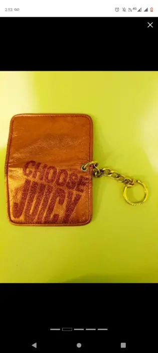 Hermoso tarjetero, ampli y para colgar sus llaves.El único detalle que tiene en una pequeña manchita barniz, no afecta su uso❤️