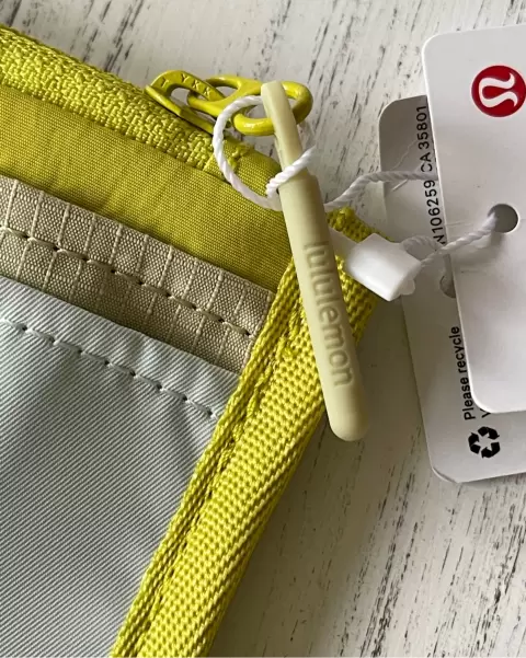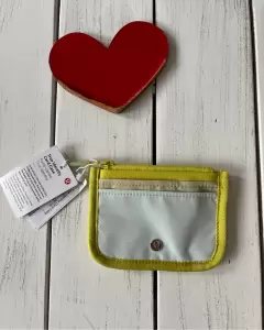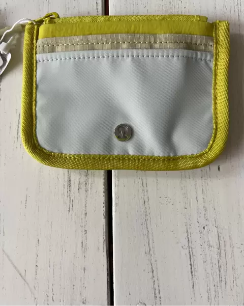 Tarjetero deportivo lululemon. Tarjetero de nylon en tonos de verde y uno en azul/grisMedidas:12 cm de largo y 8.8 cm de alto3 espacios para tarjetas y 1 con cierre para billetes o monedas.Repelente al agua.