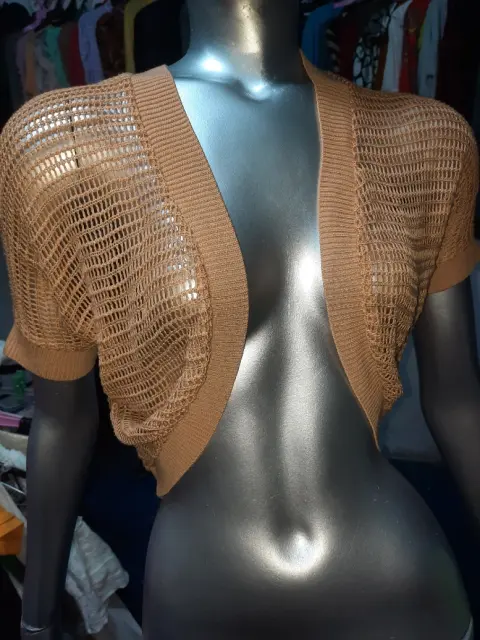 Bonito chaleco tejido color cafe claro. Bonito chaleco tejido color cafe , tipo top sin detalle , marca Shasa