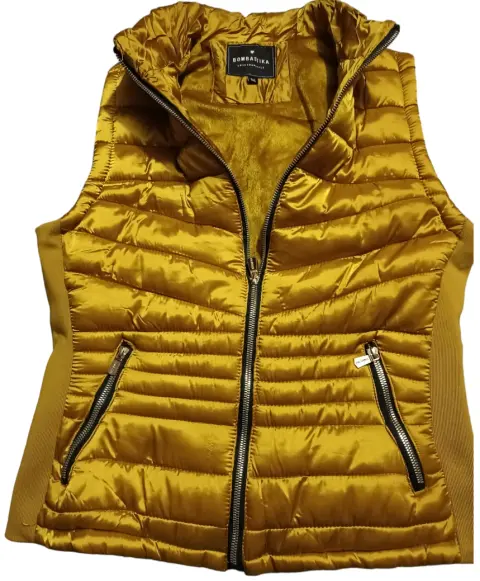 Chaleco afelpado , color mostaza , talla G .Marca Bombastika Sin detalle , solo una puesta .