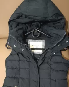 Chaleco de mujer original, sin detalle. Esta como nuevo, talla XSColor azul marino, muy oscuroTiene gorro (no desmontable) y bolsas a los lados