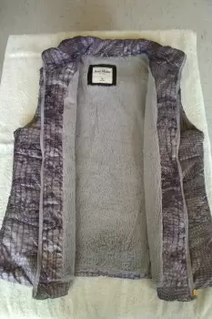 Chaleco acolchado de la marca Ann Miller, con cremallera completa, bolsillos al frente, en color índigo claro combinado con índigo obscuro , forro polar en color gris, talla M, exterior 100% poliéster, forro polar 100% poliéster, relleno 100% poliéster, lavado en casa, solo 3 puestas, en perfecto estado, sin detalles. Se entrega como aparece en las fotos. Precio regular en tienda $ 750.00 vendo en $ 400.00 Solo personas serias