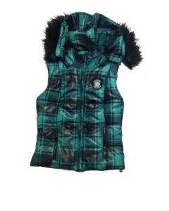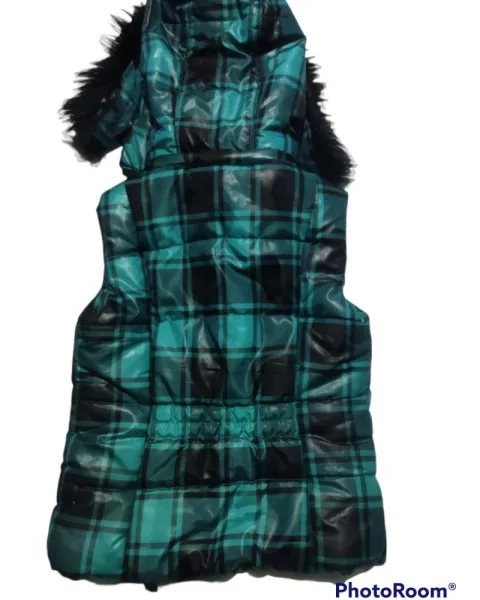 Bonito chaleco verde de cuadrosTiene muy poco uso, se le puede desmontar el gorro y la capucha, dice talla xs pero queda a talla chica también. Medidas largo 55 axila q axila 55 cm