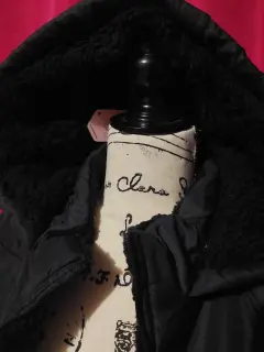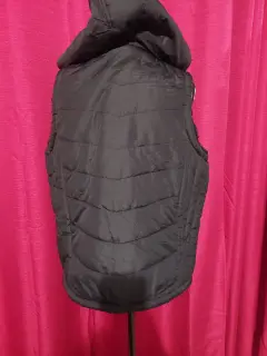 Chaleco con borrego sintético, talla XL, viene reducida a L, sin detalle ,con bolsas laterales con cierre ,el gorro no es desmontable, medida de axila a axila 106cm y de hombro a largo 58cm.
