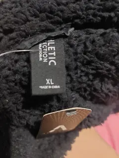 Chaleco Athletic. Chaleco con borrego sintético, talla XL, viene reducida a L, sin detalle ,con bolsas laterales con cierre ,el gorro no es desmontable, medida de axila a axila 106cm y de hombro a largo 58cm.