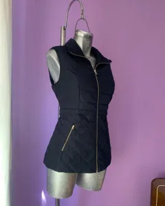 Chaleco azul marino. Hermoso chaleco largo, azul marino con forro calientito. Detalles con botones en la cintura, de la marca philosophy, le va bien a una talla chica o mediana.Sus medidas son: 68cm de largo, 80cm de cintura, 46cm de axila a axila.