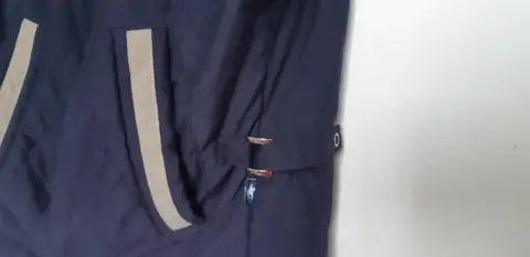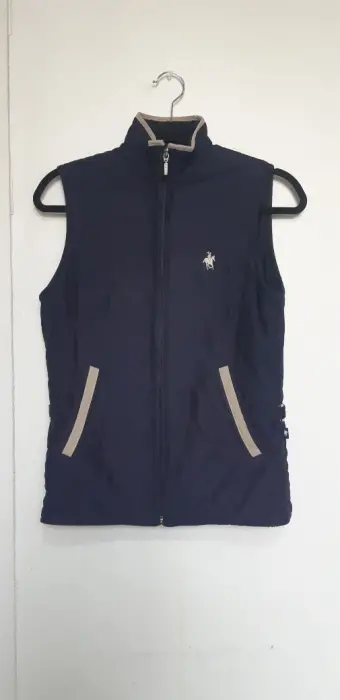 Chaleco azul marino con detalles beige de la marca POLO, se encuentra en muy buenas condiciones, es talla S
