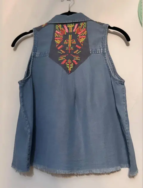 Hemoso chaleco nuevo, ideal para la temporada primavera verano, talla XS, considero que también le queda a una talla S.