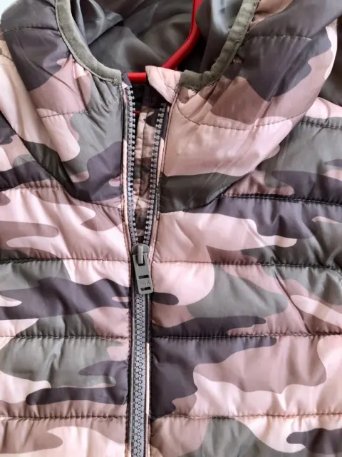 Súper ligero chaleco en camuflaje verde con rosa Tiene gorro y dos bolsasMedidas:Hombro 37cmAxila 45Cintura 43Largo 57