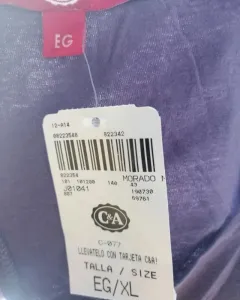 Chaleco corto color morado, talla EG. Tiene tres botones en frente se puede desabrochar, detalle de cinta ajustable atrás.