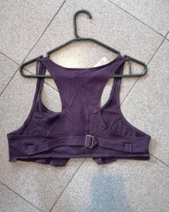 Chaleco corto morado. Chaleco corto color morado, talla EG. Tiene tres botones en frente se puede desabrochar, detalle de cinta ajustable atrás.