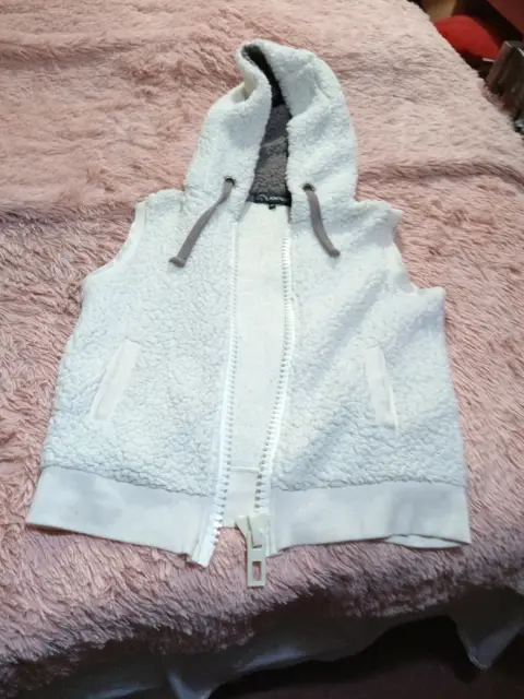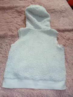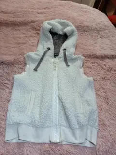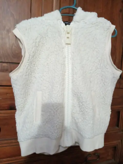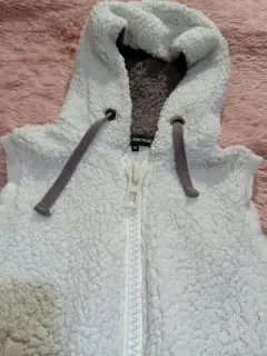 Chaleco de borrega marca JORDACHE.. Bonito chaleco blanco y café sólo x dentro de la capucha y los tirantes, dos bolsas usables al frente, very cute y fashionable te va a encantar