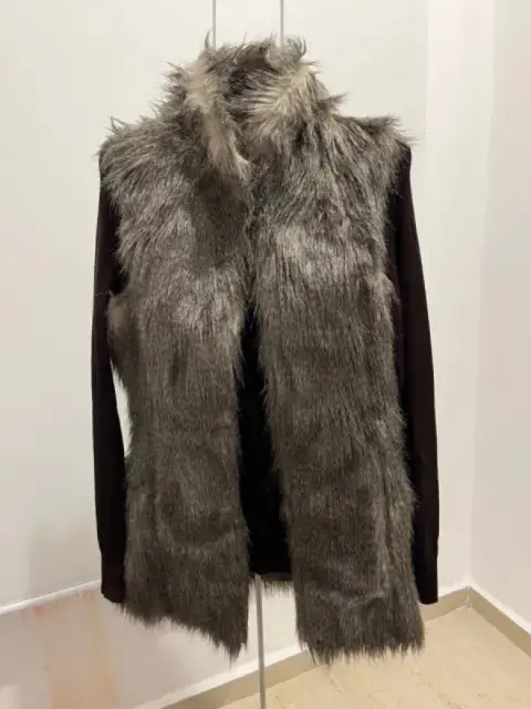 Chaleco de pelo. Bonito Chaleco de pelo sintético abierto con bolsillos y forro. Talla M. Marca Tex
