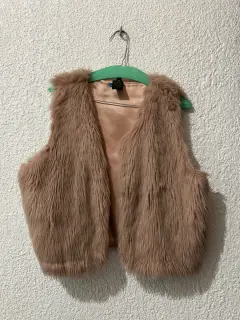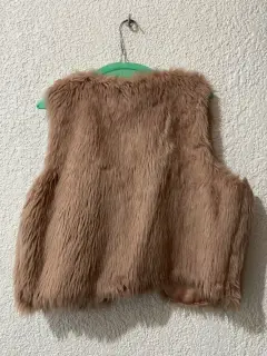 Lindo chaleco tipo de peluche, color rosa palo, viene con un broche interior para poder cerrarlo.Tiene un detalle en el forro interior que se muestra en la última foto, se descosió y fue mandado a arreglar por lo qué el surcido es diferente.