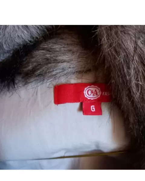 Chaleco de pelaje sintético, con forro y cinto negro de tela, marca C&A.
