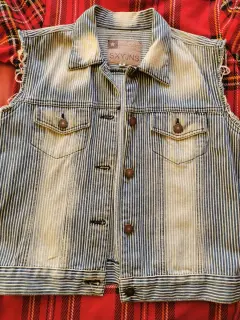 Chaleco denim (SXY JNS) 😍. Chaleco denim estilo vintage, talla mediana, color azul marino en diferentes tonos✨
