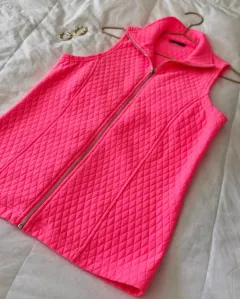Chaleco deportivo rosa fosforescente NUEVO. Chaleco acolchado rosa fosforescente es marca Cosme &co, está completamente nuevo jamás se uso, tal cual como se ve en las fotos. Le queda a cualquier talla estira muchísimo