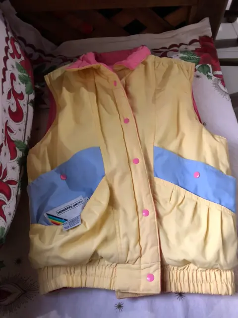 Chaleco Doble Vista Members Only. Chaleco Marca Members Only, doble vista, con broches, Talla 14 y alegres colores (Amarillo y Rosa).. Resorte a la cintura.