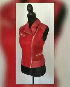 Chaleco en Fake Fur estilo Biker. Chaleco fake fur y tela dry fit estilo biker color VINO TINTO, cuello clásico c/solapas, cierre p/cremallera tono plata brillante, 2 bolsos vivo frontales simulados c/cremallera, 1 bolsillo parche simulado c/cremallera, ceñidores laterales zona baja p/mejor ajuste y forro interior. Talla G (da a M/G). Dimensiones cms: 40 hombro, 46.5 axila, 43.5 cintura, 48.5 zona baja, 52.5 largo. Tela 1: 100% poliuretano, tela 2: 100% poliéster, forro: 100% poliéster. Para lavado en casa.