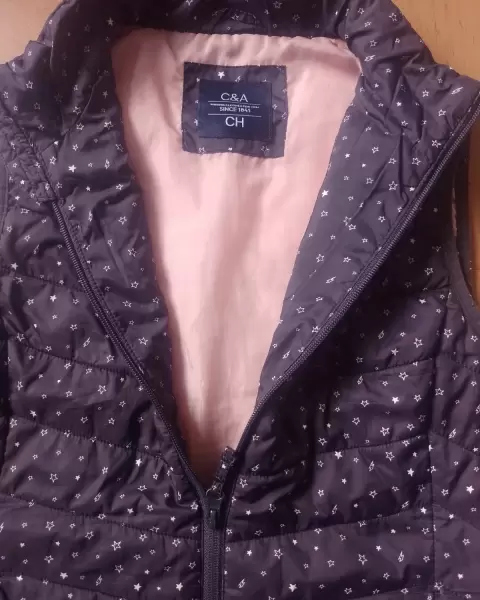 Chaleco delgado, estampado de estrellas, talla S a pesar de su uso conserva su color original.