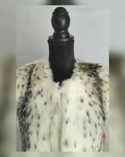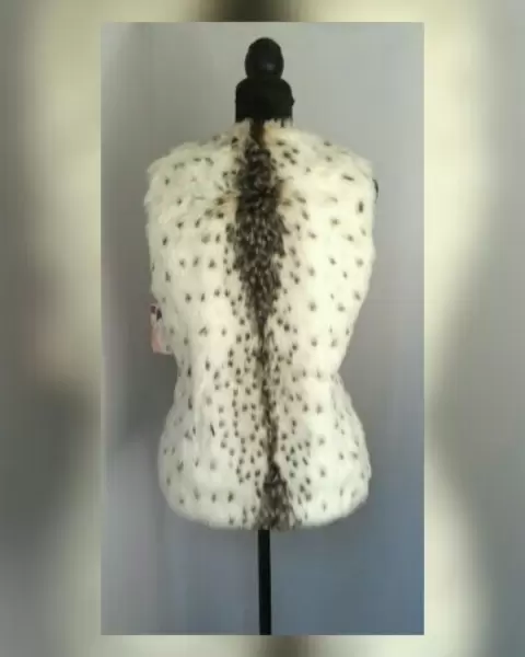 Chaleco faux fur MARMOLEADO en tonos MARFIL/CHOCOLATE/OCRE DORADO, cierre mediante ganchillo, cuello redondo, 2 bolsos laterales ocultos y forro interior. Talla M. Dimensiones cms: 39 hombro, 52 axila, 50 cintura, 60 zona baja, 64.5 largo. 85% acrìlico, 15% poliéster. P/lavado en seco.