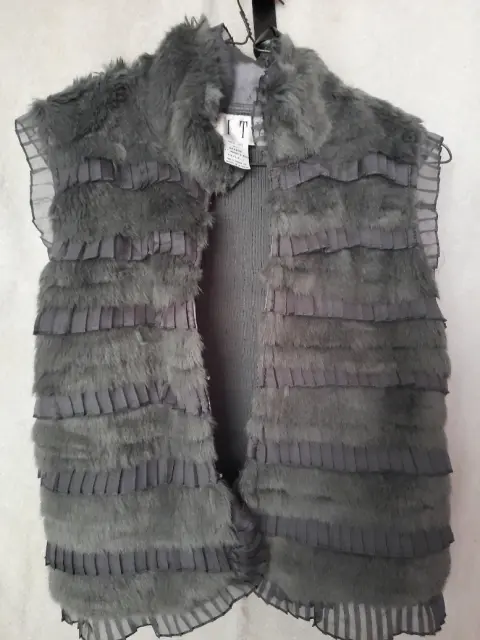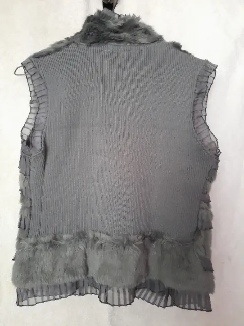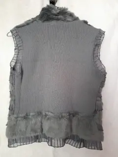 Chaleco fino con pelo gris, talla grande, se cierra al frente con ganchos