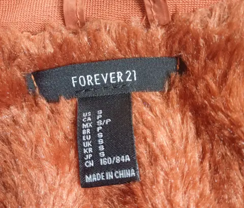 Chaleco marca forever 21 color ladrillo, talla chica (viene reducido) con bolsas en la parte frontal y detalles de cierre en color dorado, forrado en la parte interna con peluche del mismo color, nuevo sin etiqueta