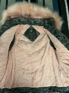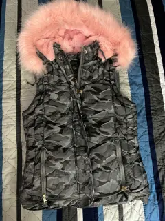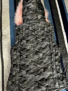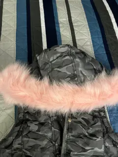Hermoso chaleco marca Greenlander nuevo sin estrenar, con peluche rosa por dentro muy calientito, tonos grises con estampado camuflado. Es talla L pero viene reducido y queda bien a M. Tiene gorro desmontable.