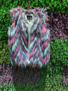 Chaleco peludo multicolor con cremallera , se usó una sola vez es talla 7 de niña marca Guess