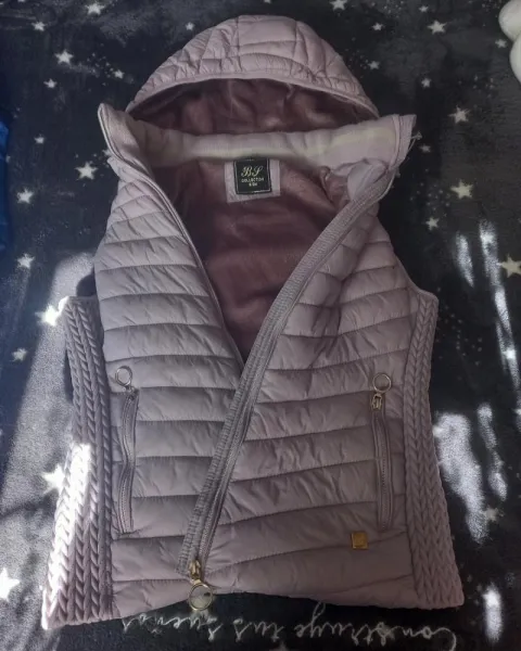 Bonito Chaleco juvenil, es talla S pero igual le queda hasta la M, cuenta con forro y gorro, el color es lila, es super calentito, ideal para esta temporada