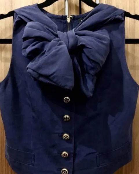 Chaleco Marc Jacobs. Increíble chalequito morado con moño. Luce muy bonito y es combinable con varios estilos. tiene un DETALLE: Le falta un botón, sin embargo, no se nota por el moño de enfrente. Los botones son los originales.