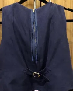 Increíble chalequito morado con moño. Luce muy bonito y es combinable con varios estilos. tiene un DETALLE: Le falta un botón, sin embargo, no se nota por el moño de enfrente. Los botones son los originales.