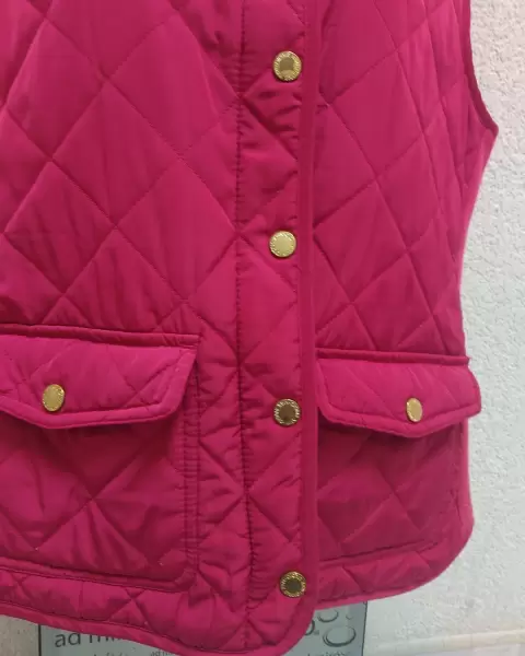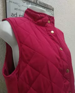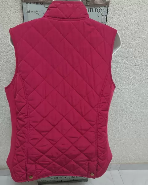 Chaleco hermoso, comodo y adecuado para toda estación del año. Color Fuisha, con cierre y botones a presion dorados. Dos bolsillos y dos botones en la espalda que le dan un toque dinámico. Exterior, relleno y forro 100% poliéster. 50cm de axila axila. 23cm de manga. 61cm de largo. Súper lindo!!