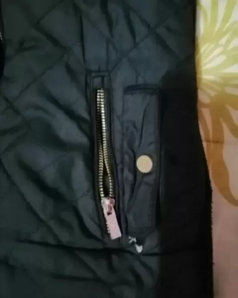 Bonito chaleco, calentito, tiene felpa por dentro, se abrió un poquito de la bolsa pero es mínimo, lo demás esta perfecto tiene plicaciones metálicas ajusta muy bien al cuerpo,