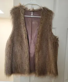 Chaleco pelo sintético en tonos cafés, medidas: De axila a axila 55, largo 58 cm