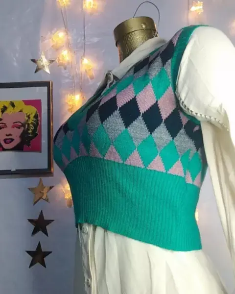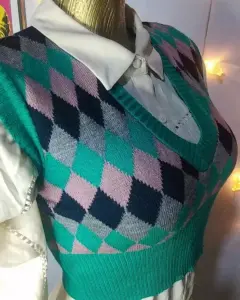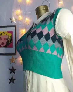 Chaleco rombos crop. :🌈No incluye blusa🌈unitalla ch, m, g🌈 completa tu outfit con este lindo chaleco de rombos negro, rosaditos y verdes 🤍
