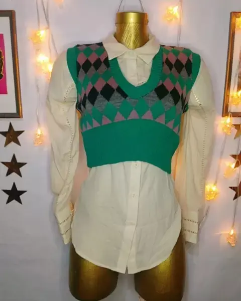 :🌈No incluye blusa🌈unitalla ch, m, g🌈 completa tu outfit con este lindo chaleco de rombos negro, rosaditos y verdes 🤍