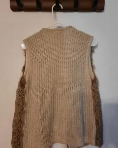 Chaleco tejido café con peluche Beshka. Chaleco tejido café talla S con peluche en la parte delantera, cuenta con cierre y botones en la parte de abajo y arriba, es ligero de utilizar, se ocupo muy pocas veces