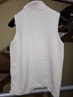 Chaleco tejido de trenzas fino, color beige ,en talla S que da hasta tallaM